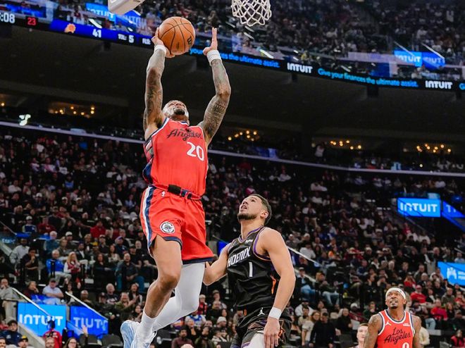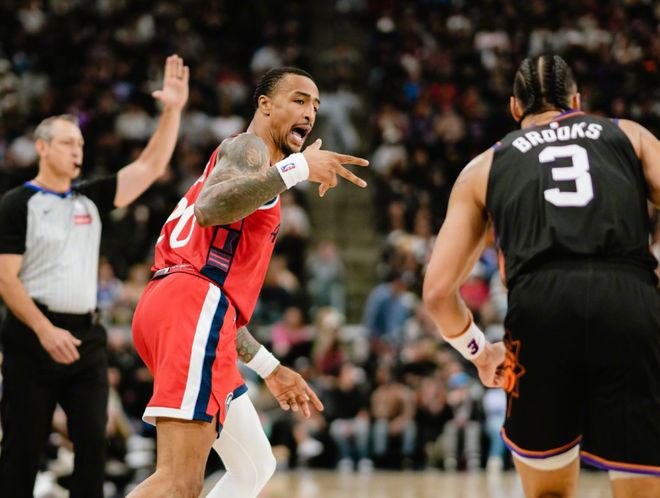 太阳开局以来4胜5负,整体表现比预期要好,特别是阿伦+奥尼尔+邓恩+马威四位角色球员,发挥都比较稳定。上一场和快船的较量,杰伦格林迎来太阳生涯首秀,23分钟轰下29分,三分组织防守表现都很全面。布克也直言,看到了杰伦格林的潜力,他有非常高的天赋。值得一提的是,布克在赛季前八场场均砍下31分,也刷新了由自己保持的此前场均29.6分的队史纪录。赛前,快船随队记者确认,哈登因生病,降级为出战成疑(50%概率)。但泰伦卢公布的首发阵容,还是哈登,而且本场比赛快船再度变阵,把邓恩拿上去,搭档比尔和哈登。